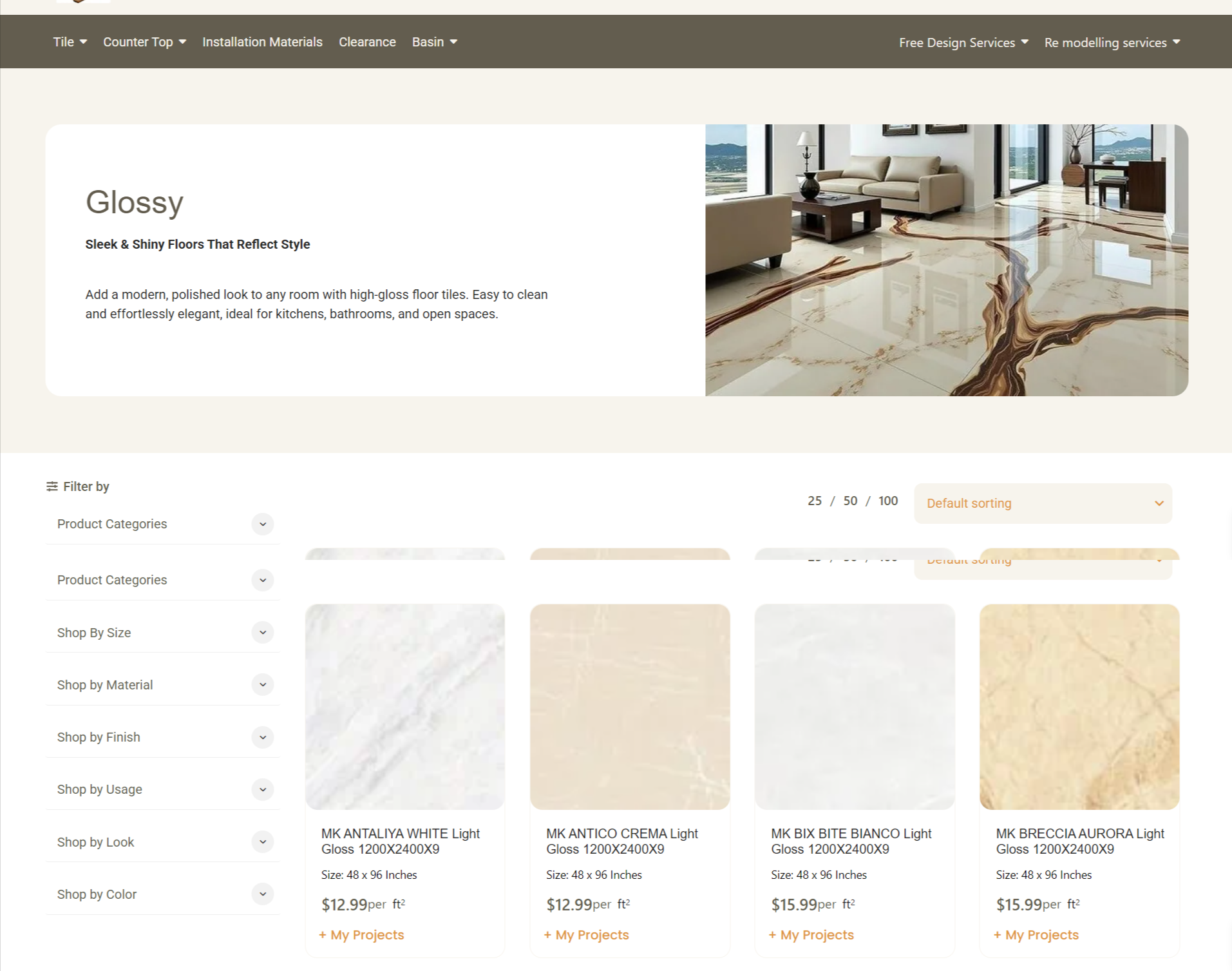 - Project-based discovery Created a “My Projects” section where tiles are showcased inside real residential & commercial spaces — because people trust what they can see in use.